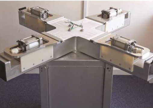 At Base Structures, each roll of fabric is tested in our biaxial rig to the same design loads that the actual canopy will need to be tensioned out to. The amount the fabric stretches is fed back into how much the fabric pattern is ‘compensated’ in the patterning software; i.e. ‘shrunk’ in size so that it fits perfectly when tensioned out to datum.